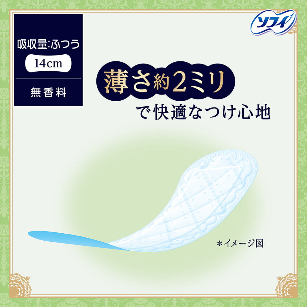 おりものシート 贅沢吸収 天然コットン100%※1 ※1肌に触れる面は100%天然コットン素材です | 薄さ約2ミリで快適なつけ心地 吸収量:ふつう | おりもの・水分を贅沢に吸収!天然コットン100%※1素材を贅沢に使用! 3倍※3吸収シート デオドラント※2 ※1肌に触れる面は100%天然コットン素材です |