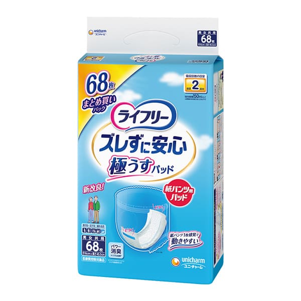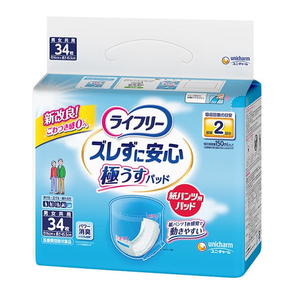 ライフリーズレずに安心紙パンツ用パッド極うすパッド2回吸収 34枚