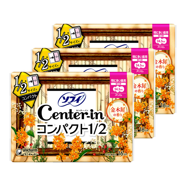 センターイン コンパクト1/2 金木犀の香り 特に多い昼用 羽つき 24.5cm 16コ入×3セット