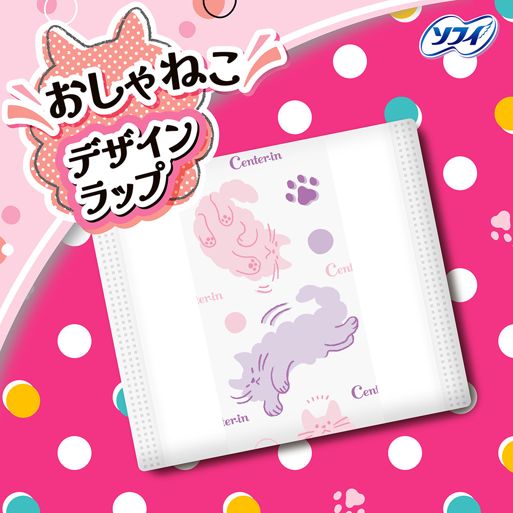 ![]() ●つけるとき前後が分かりやすい猫デザイン | ![]() おしゃねこデザインラップ | ![]() カサカサ音がしない「やわらかラップ」 |