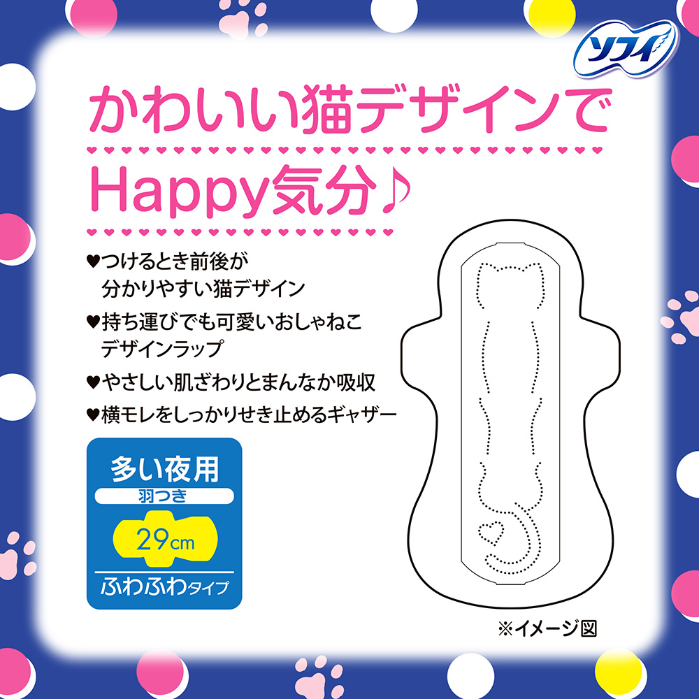 ![]() ●つけるとき前後が分かりやすい猫デザイン | ![]() おしゃねこデザインラップ | ![]() カサカサ音がしない「やわらかラップ」 |