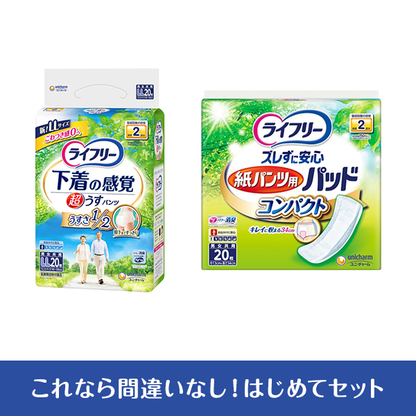 下着の感覚ではける紙パンツと紙パンツ用パッドのセットで、はじめての紙パンツも安心。