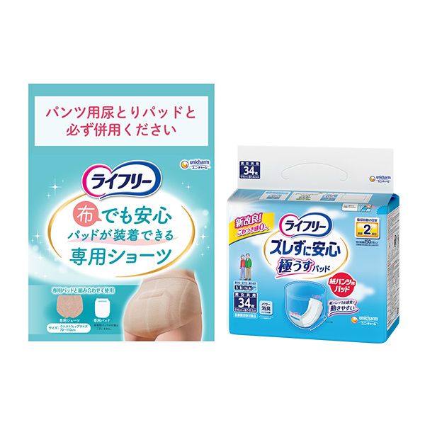 ライフリー布でも安心パッドが装着できる専用ショーツ+ズレずに安心紙パンツ用パッド 2回34枚