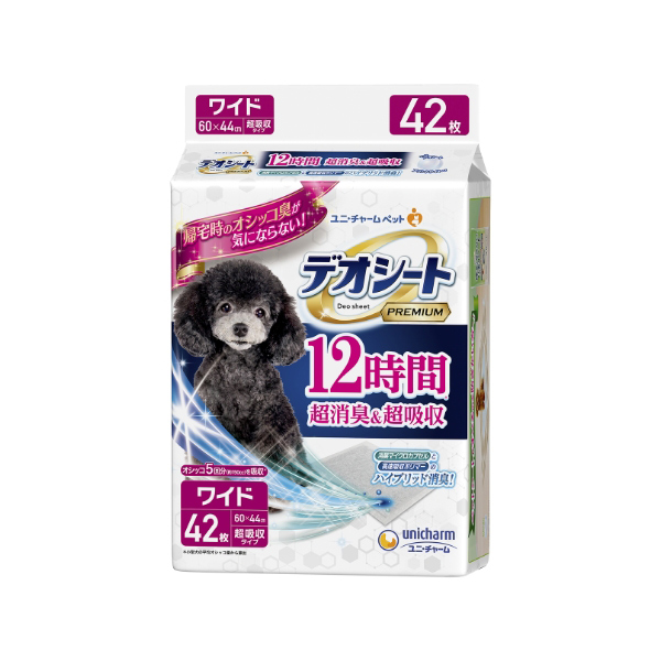 プレミアム超吸収体 登録特許技術② 登録特許技術③ 登録特許技術④ | ワイドサイズ ワイド:新聞紙大(60cm×44cm:外寸) オシッコ5回分(約150cc)を吸収* 代表的な犬種例は、ミニチュア・ダックスフンド、トイ・プードル、シー・ズー、ミニチュア・シュナウザー、ウェルシュ・コーギーなど (犬種はあくまで目安ですので、使用方法に合わせてサイズをお選びください) |