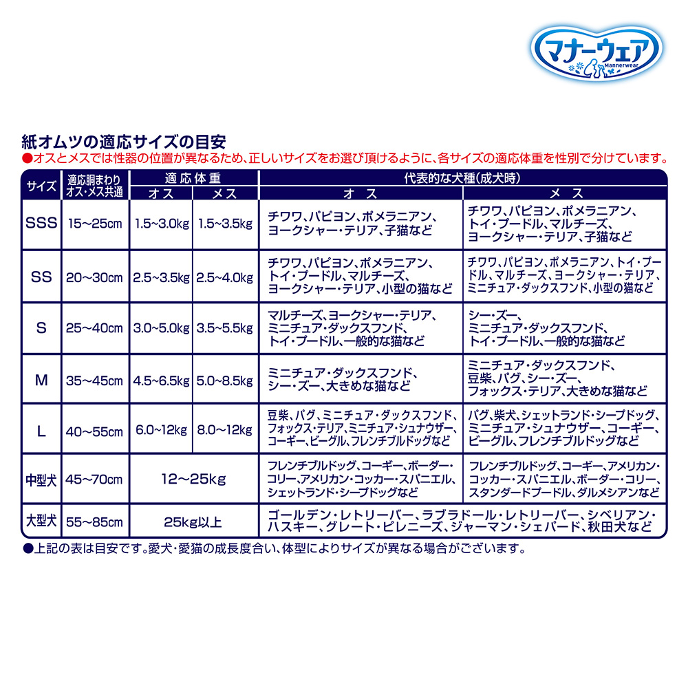マナーウェア 長時間快適オムツ 男女共用 大型犬用 |