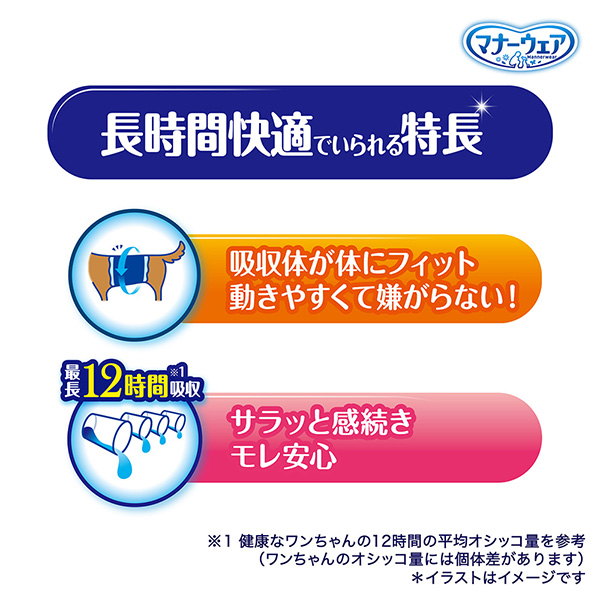 ![]() 最長12時間吸収※ | ![]() 全面通気シートで、ずーっとお肌サラサラ | ![]() ・吸収体が体にフィット動きやすくて嫌がらない! |