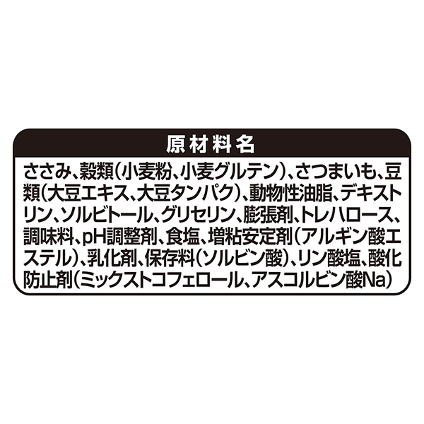 グラン・デリ ワンちゃんのおいも蒸しパン風グラン・デリ ワンちゃんのおいも蒸しパン風 | ふんわり優しいおいしさのおいも蒸しパン風100%国産*の鶏ささみとさつまいもを使用。 国産/着色料・砂糖無添加 | 原材料名 |