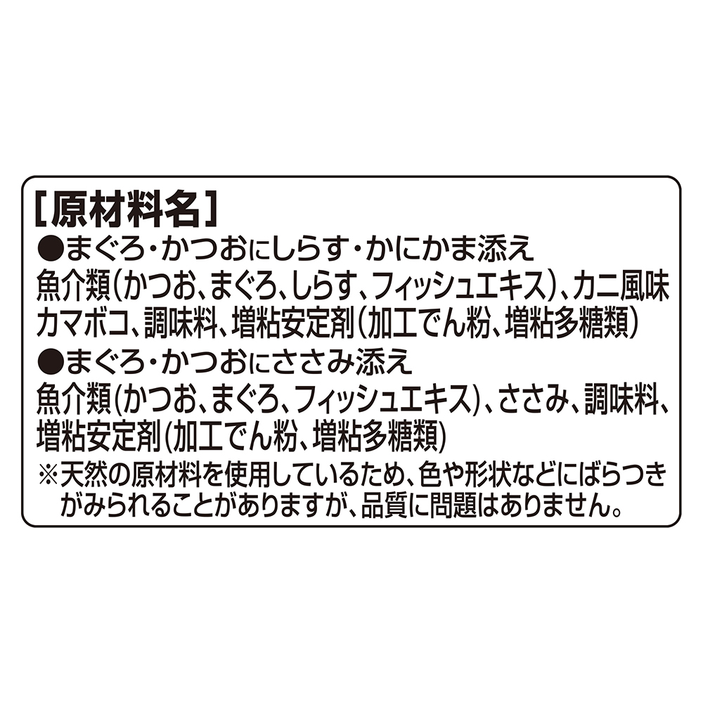 具と一緒に味わう贅沢な美味しさジュレ まぐろ・かつおにしらす・かにかま添え | 2種のアソートまぐろ・かつおにしらす・かにかま添え×4袋 | 原材料名 |