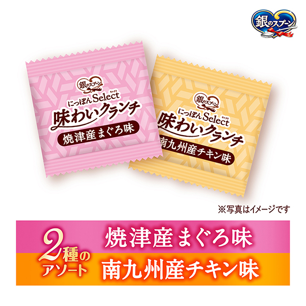 銀のスプーン にっぽんSelect 味わいクランチ国産厳選素材入り ※1つの個包装の中に全種類の粒が入らないことがあります | 2種のアソート焼津産まぐろ味 | 原材料名 |