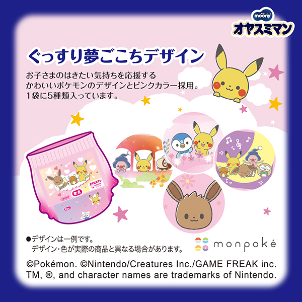 ぐっすり夢ごこちデザインお子さまのはきたい気持ちを応援するかわいいポケモンのデザインとピンクカラー採用。 | moonyブランドでポイントをためると、全員必ずギフトがもらえる!最大10,000円相当のギフトも! |
