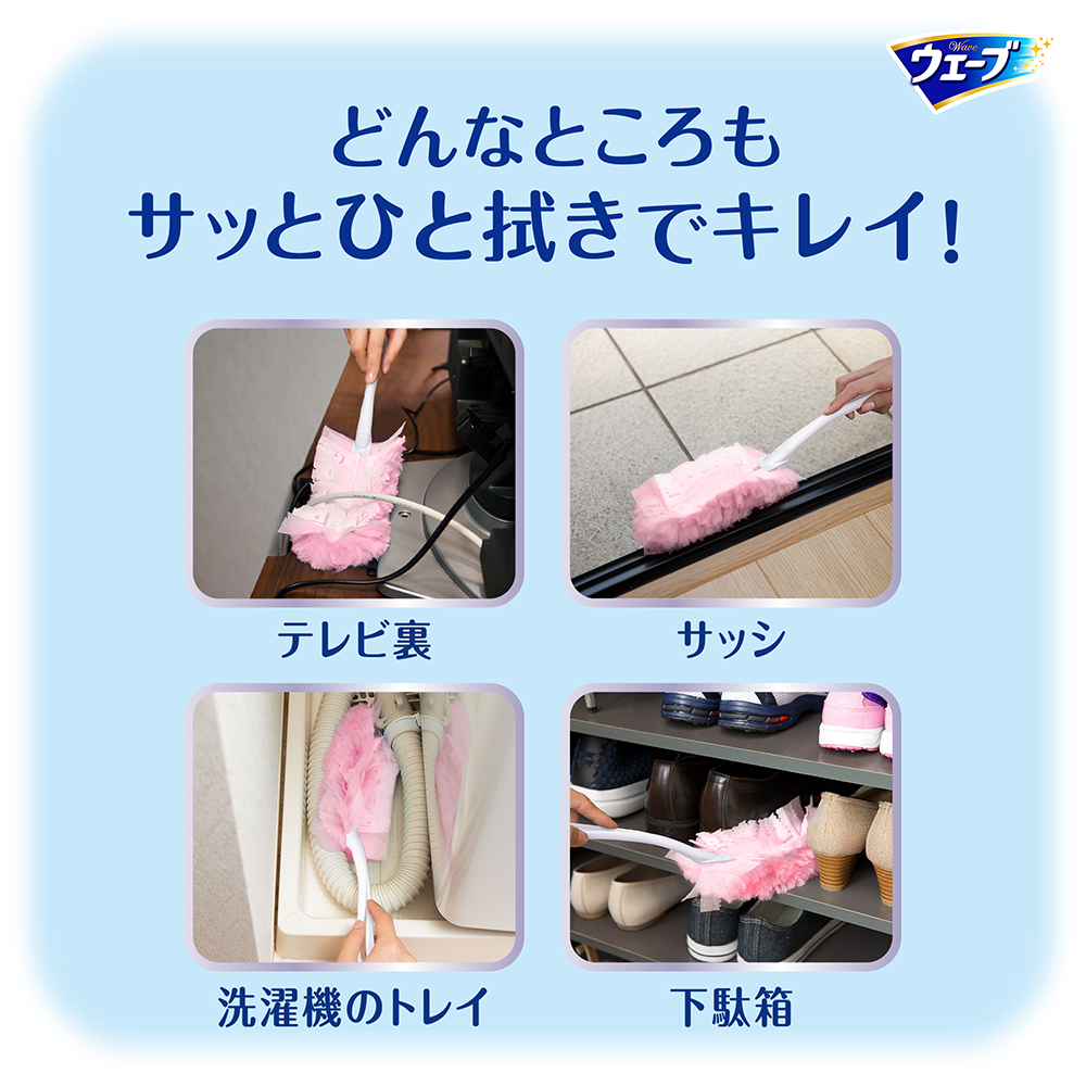 驚きのひと拭き吸着驚きのひと拭き吸着 取り替えシート | どんなところもサッとひと拭きでキレイ!どんなところもサッとひと拭きでキレイ! | 無駄なく使えるスマート設計・からめる密着構造 |