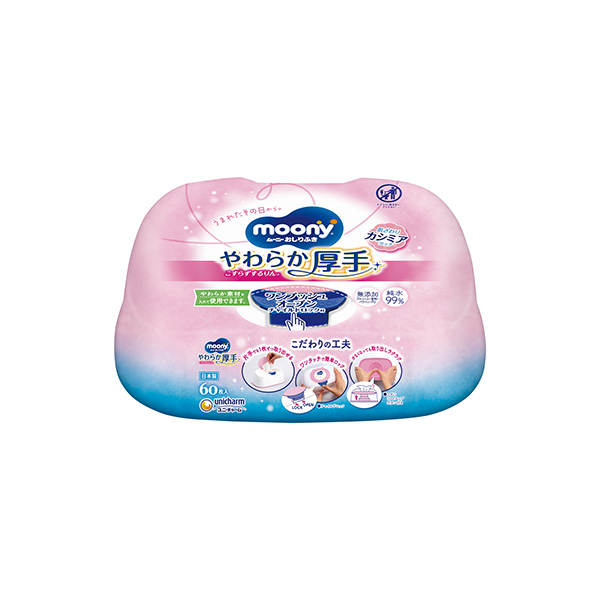 水分たっぷり層にうんちなじみ成分を配合しているので、時間が経ったこびりつきうんちにもサッとなじんで、こすらずするりんっ!とふいてあげられます。