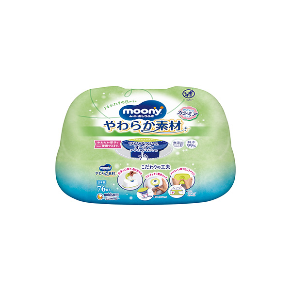 水分たっぷり層にうんちなじみ成分を配合しているので、時間が経ったこびりつきうんちにもサッとなじんで、やさしくキレイにふいてあげられます。 シートサイズ:135mm×200mm |