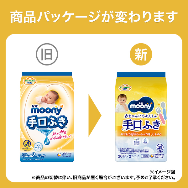 おでかけに便利なコンパクトサイズ 新発売!おでかけにも便利な手口ふき。水分たっぷりだからパパっと安心キレイ。外出先の持ち運びにも便利なコンパクトサイズです。 | 手・口まわりもやさしくきれいに やわらか素材なので、手・口まわりもやさしくきれいにふきとれます | 赤ちゃんのお肌を考えた安心な手口ふき 「ムーニー 手口ふき」は、純水99%、パラベン無配合、無香料、ノンアルコールタイプ 日本製・トイレに流さないでください。 |