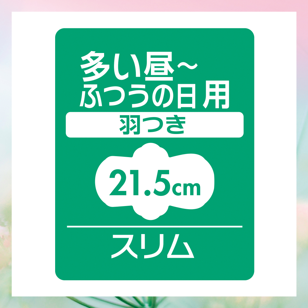 天然の香り ナチュラルフローラル | 多い昼~ふつうの日用 羽つき 21.5cm スリム 多い昼~ふつうの日用 羽つき 21.5cm スリム | 1/2*サイズで持ち歩きにベスト! 持ち歩きにベスト! |
