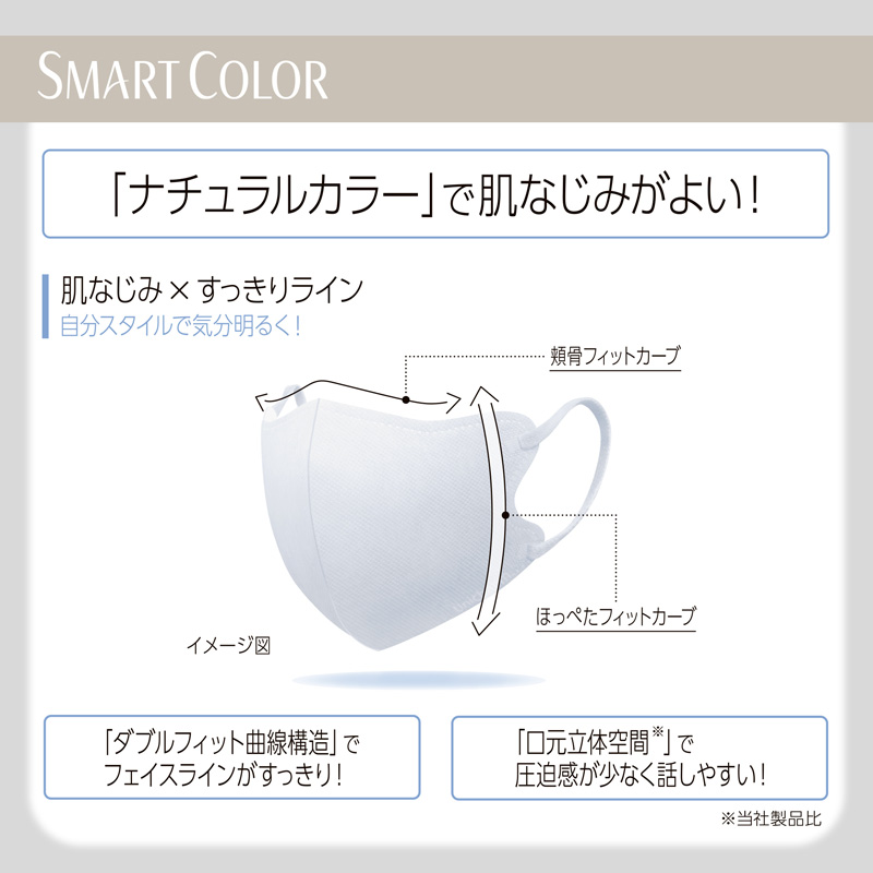 肌なじみ×すっきりライン 「ダブルフィット曲線構造」でフェイスラインがすっきり! 「口元立体空間※」で圧迫感が少なく話しやすい! |