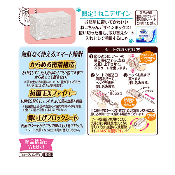 【限定ネコデザイン】ウェーブハンディ取替白10枚 茶ネコ