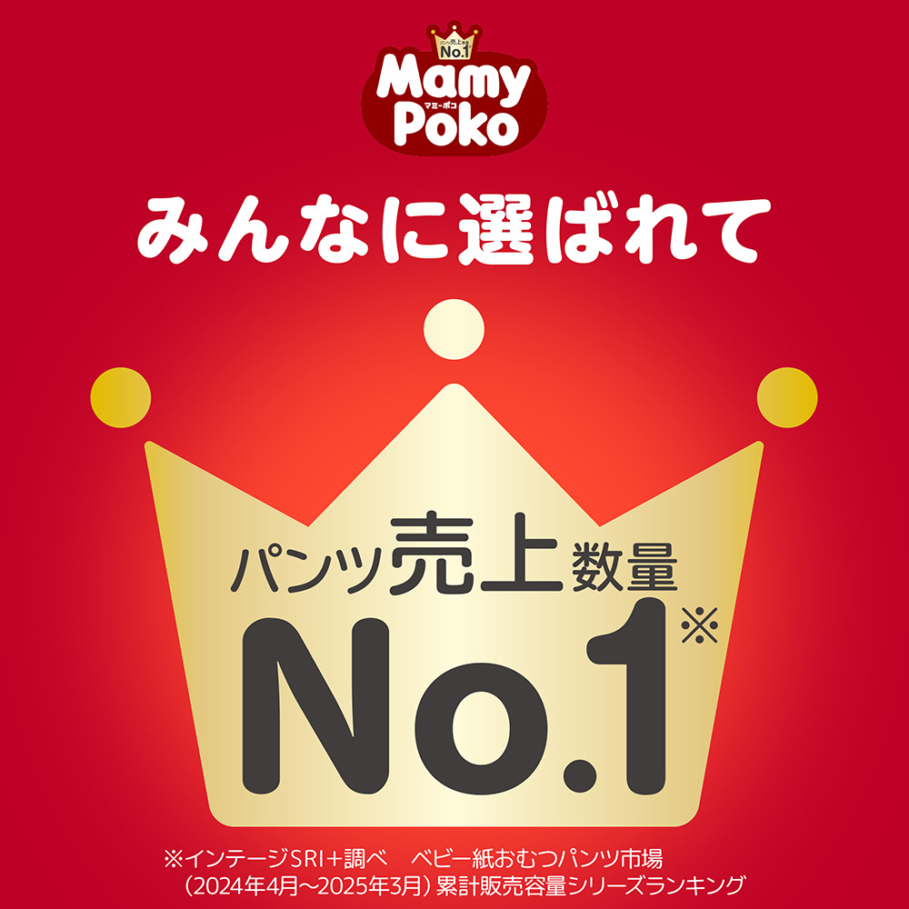 マミーポコ みんなに選ばれてNo.1※※インテージSRI+調べ ベビー紙おむつパンツ市場(2024年4月~2025年3月)累計販売容量シリーズランキング |
