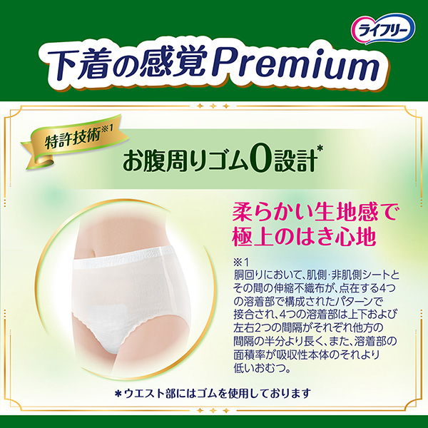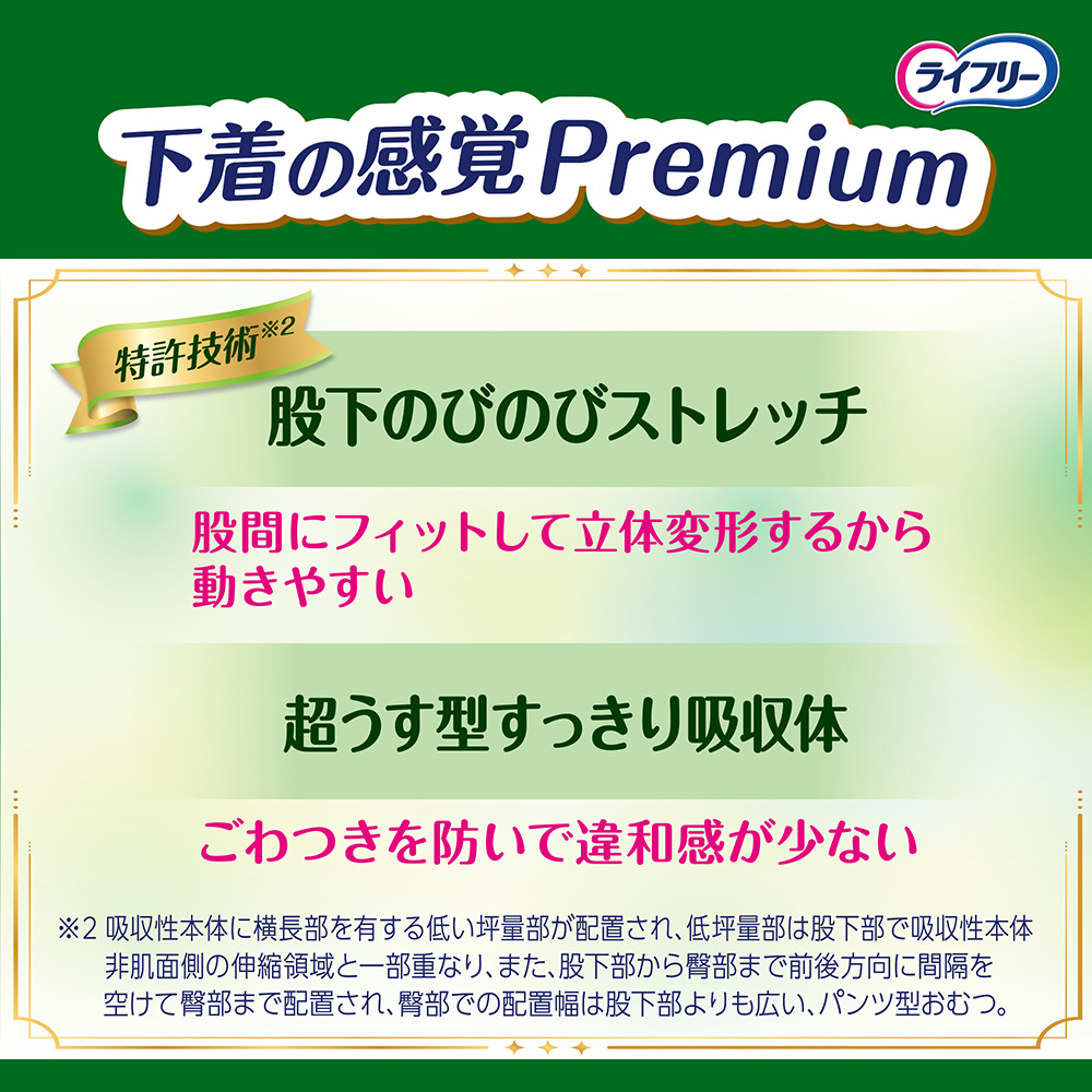 ![]() 特許技術※1 | ![]() 特許技術※2 | ![]() 吸収回数の目安:排尿2回分 |