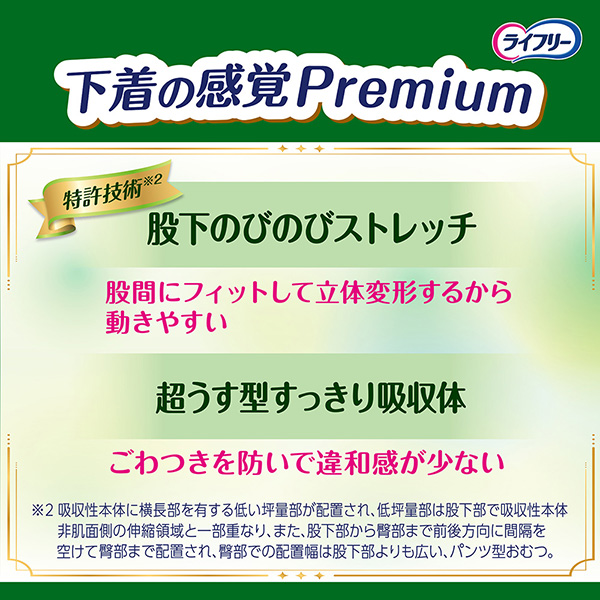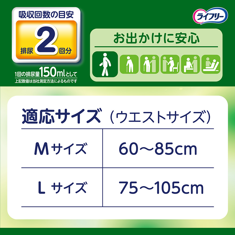 ![]() 特許技術※1 | ![]() 特許技術※2 | ![]() 吸収回数の目安:排尿2回分 |