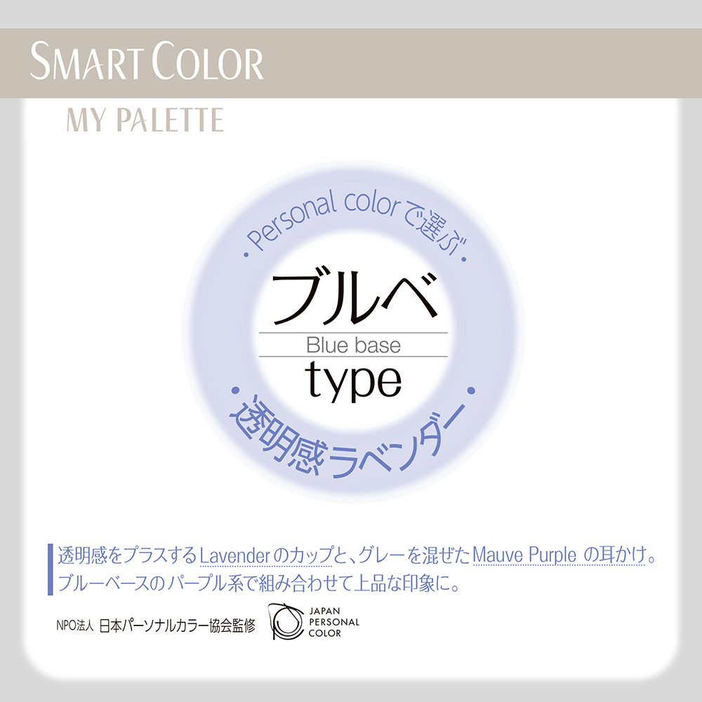 ![]() 「内側ベージュカラー」でファンデうつりが目立ちにくい! | ![]() 透明感ラベンダー Personal colorで選ぶ | ![]() ・ふつう ラベンダー×パープル |
