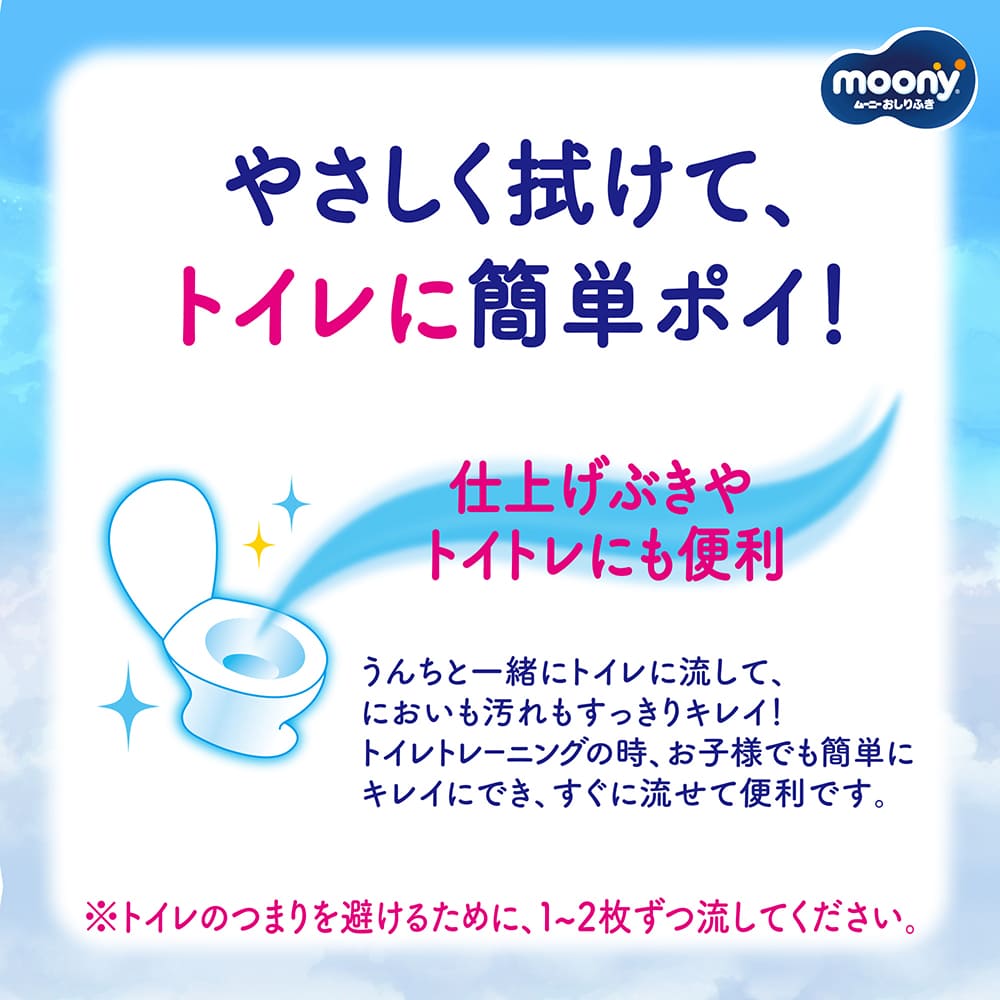 ![]() ふんわり仕上げで、やさしくふける うんちが固くなりだしたら ※トイレのつまりを避けるために、1~2枚ずつ流してください | ![]() ・無添加 極細繊維を水と蒸気でふんわり織り上げているので、お子様のデリケートなお肌にもやさしい肌ざわりです。 | ![]() 仕上げぶきやトイトレにも便利 ※トイレのつまりを避けるために、1~2枚ずつ流してください。 |
