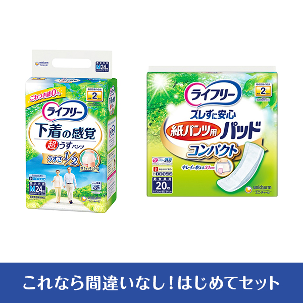 下着の感覚ではける紙パンツと紙パンツ用パッドのセットで、はじめての紙パンツも安心。