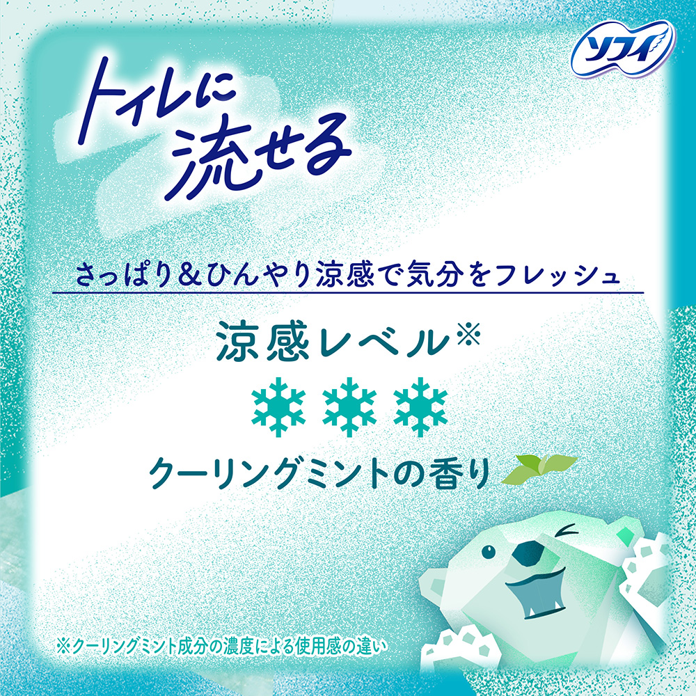 ソフィ クール 涼感 デリケートウェットシートソフィ クール 涼感 デリケートウェットシート | トイレに流せるさっぱり&ひんやり涼感で気分をフレッシュ |