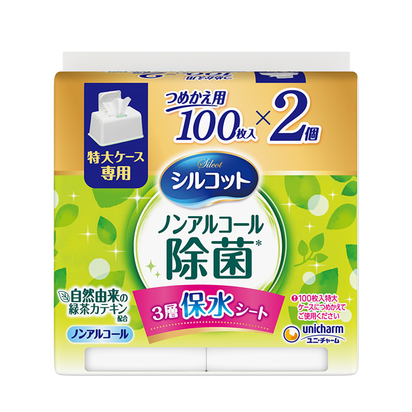 【ケース】シルコット ノンアルコール除菌ウェットティッシュ 大容量専用詰替 100枚×12個パック