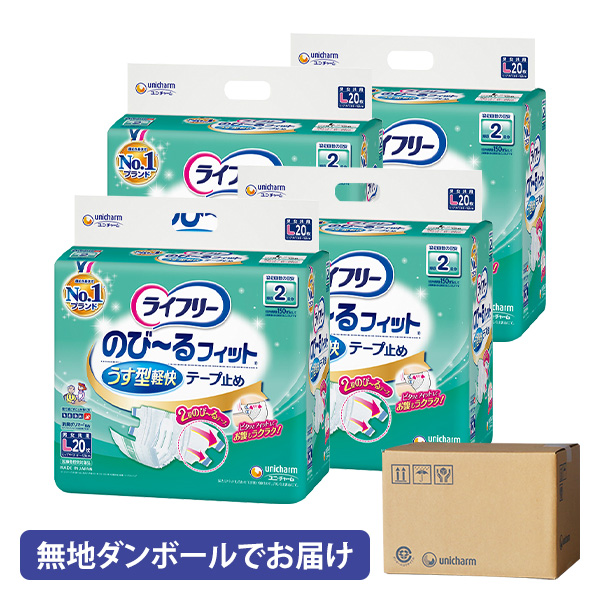 【無地ダンボールでお届け】ライフリー のびーるフィット うす型軽快テープ止め 2回 L 20枚×4