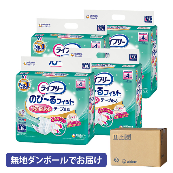【無地ダンボールでお届け】ライフリー のびーるフィット うす型安心テープ止め 4回 L 18枚×4