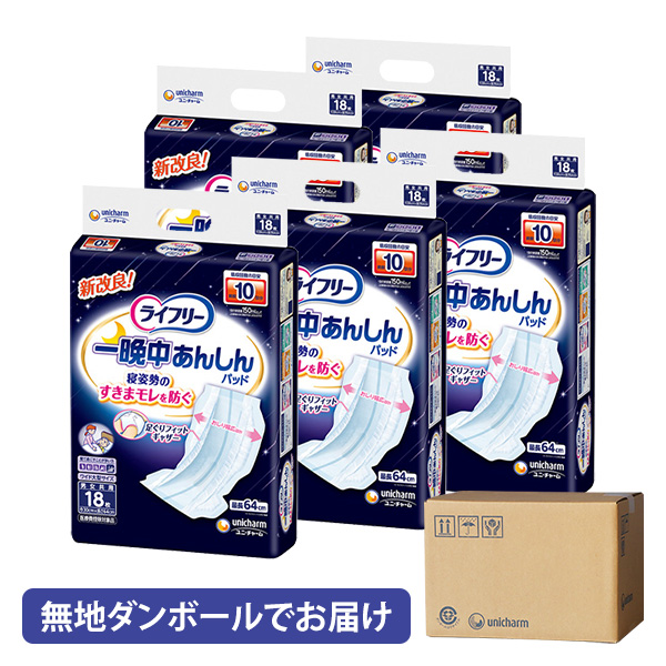 【無地ダンボールでお届け】ライフリー 一晩中あんしん尿とりパッド 夜用超スーパー 10回 18枚×4