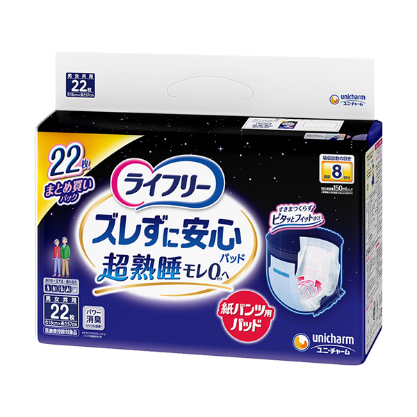 ライフリーズレずに安心紙パンツ専用尿とりパッド夜用8回吸収 22枚×3袋