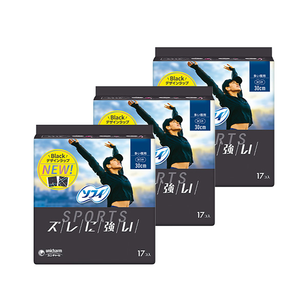 SPORTS(スポーツ) 多い夜用 羽つき 30cm 17コ入×3セット高密度の3Dフィット吸収体が多量に吸収し、多い日でも安心です。