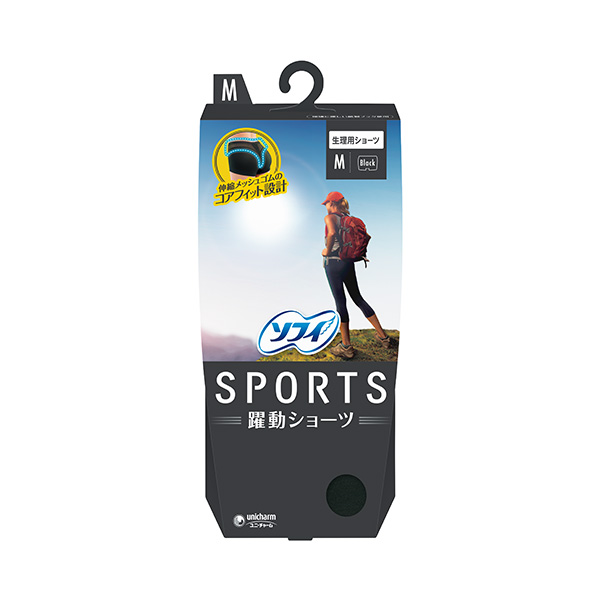 フィット性の高い独自形状が動きや衝撃によるズレを防ぎナプキンのフォームを保ちます。 - SPORTS(スポーツ) 躍動ショーツ ブラック Mサイズ