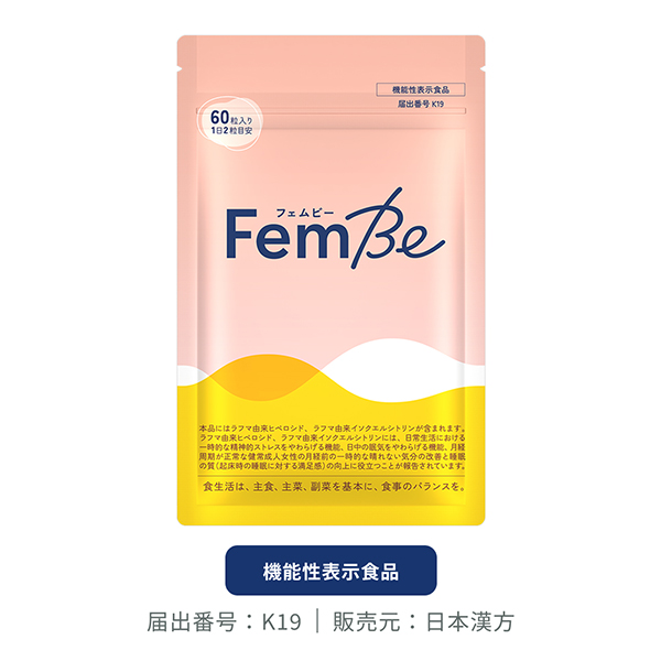 しかも、ビタミンC誘導体 ビタミンB3配合。いつものパック・パッティングにいかがでしょう。 - FemBe(サプリメント)60粒入り