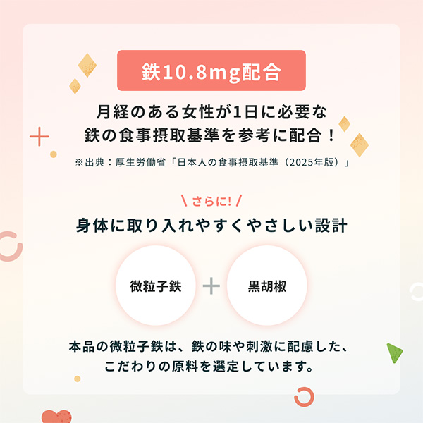 本品の微粒子鉄は、鉄の味や刺激に配慮した、