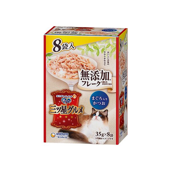 - 魚介類(かつお、まぐろ)、酵母エキス、コーンスターチ、増粘多糖類※天然由来の原料を使用しているため、色・形・大きさは多少ばらつく場合がありますが、品質には問題ありません。