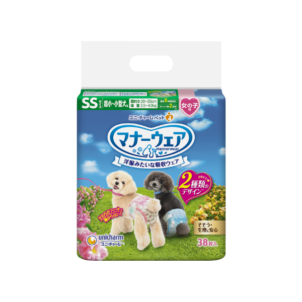 「マナーウェア女の子用」は、生理の時に、お出かけやお散歩時のマーキングやそそうに安心です。 旅行やドライブなど長時間の外出にもモレ安心の吸収設計です。 お部屋にいるとき、お留守番のときに使用することもできます。 |