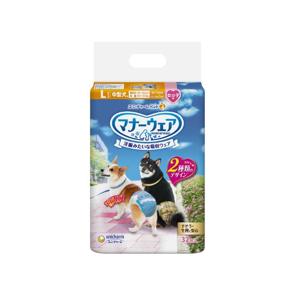 「マナーウェア女の子用」は、生理の時に、お出かけやお散歩時のマーキングやそそうに安心です。 旅行やドライブなど長時間の外出にもモレ安心の吸収設計です。 お部屋にいるとき、お留守番のときに使用することもできます。 |