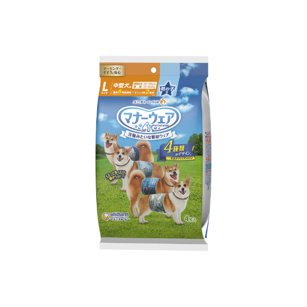 洋服みたいな吸収ウェア もう3人に1人が使ってる!洋服みたいな吸収ウェア。 おしゃれなデザインで、お気に入りの洋服とコーディネートも楽しめます ※2019年8月時点 マナーウェアを現在使用中の方 ユニ・チャーム調べ | 短時間使用にオススメ! 「旅行やお出かけ・お留守番にも安心の最長6時間*吸収(オシッコ約2回分*) *ワンちゃんの6時間の平均オシッコ量を参考 | 洋服みたいな吸収ウェア「マナーウェア」 ユニ・チャームペット「マナーウェア 男の子用」は、洋服みたいな吸収ウェア(犬用オムツ)。 4種のデザイン(青チェック・紺チェック・迷彩・デニム)が1枚ずつ入ったトライアルパックで、お出かけにもおススメです。 |