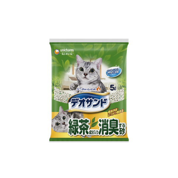デオサンド 緑茶成分入り消臭する砂 瞬間消臭・しっかり固まる | 消臭成分を強化して、高い消臭効果を実現! オシッコやウンチの嫌なニオイが残らない独自の消臭技術を採用。 緑茶成分配合。 | しっかり固まり、崩れにくいのでサッとお手入れができます オシッコを吸収すると、粒同士がしっかり固まり崩れにくく、トイレの底も汚れにくいので、清潔です。 |