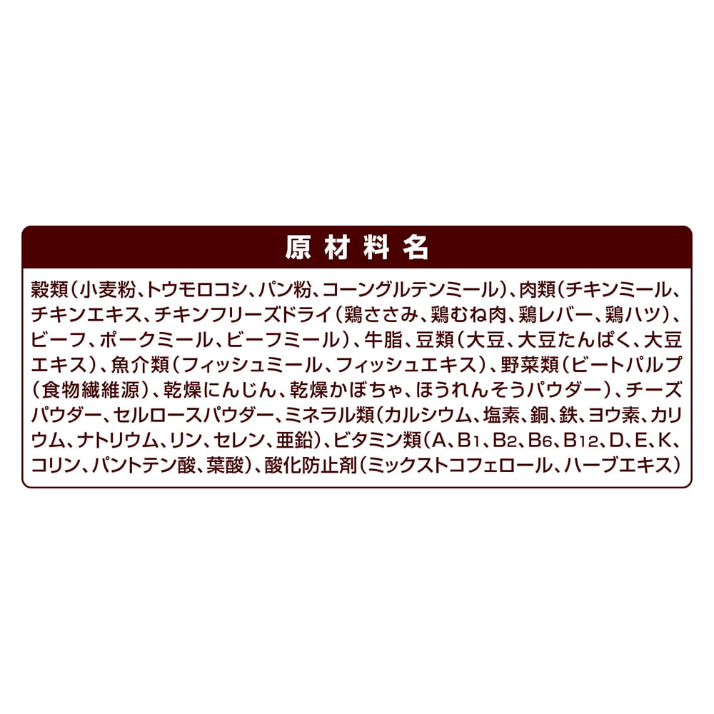●野菜やチキンの粉末が粒表面に付着している場合がありますが、品質に問題はありません。