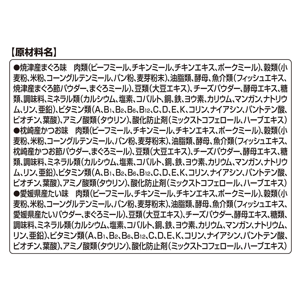 銀のスプーン にっぽんSelect 味わいクランチ国産厳選素材入り ※1つの個包装の中に全種類の粒が入らないことがあります | 3種のアソート焼津産まぐろ味 | 原材料名 |