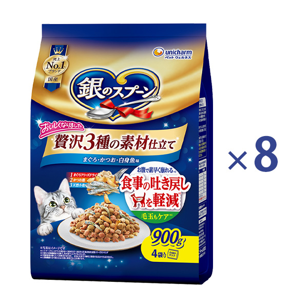 【ケース】銀のスプーン贅沢3種の素材仕立て食事の吐き戻し軽減フードまぐろ・かつお・白身魚味 900g×8