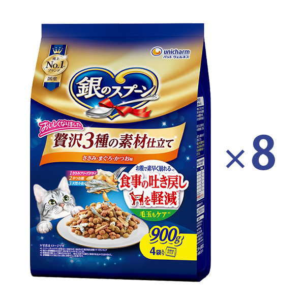 【ケース】銀のスプーン贅沢3種の素材仕立て食事の吐き戻し軽減フードささみ・まぐろ・かつお味 900g×8