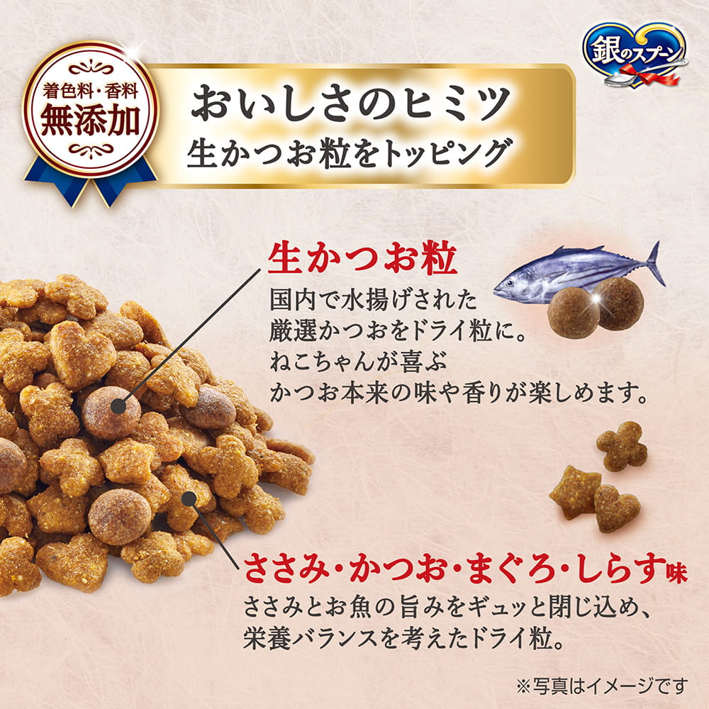 国産生かつおinささみと海の幸ブレンド~ささみ・かつお・まぐろ・しらす味~ | おいしさのヒミツ 生かつお粒をトッピング着色料・香料無添加 生かつお粒 ささみ・かつお・まぐろ・しらす味 | ねこの下部尿路マグネシウム調整 |