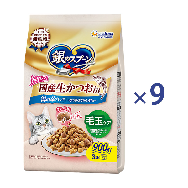 【ケース】銀のスプーン国産生かつおin毛玉ケア海の幸ブレンド 900g×9