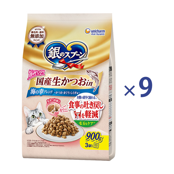 【ケース】銀のスプーン国産生かつおin食事の吐き戻し軽減フード 海の幸ブレンド 900g×9